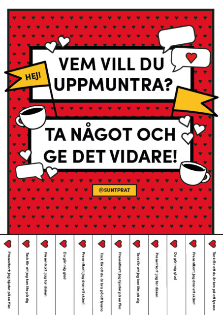 Här finns en bild att skriva ut och sätta upp. Kanske i skolan, på jobbet, affären eller kyrkan. Den som vill tar en lapp och ger den vidare till någon som behöver uppmuntras.